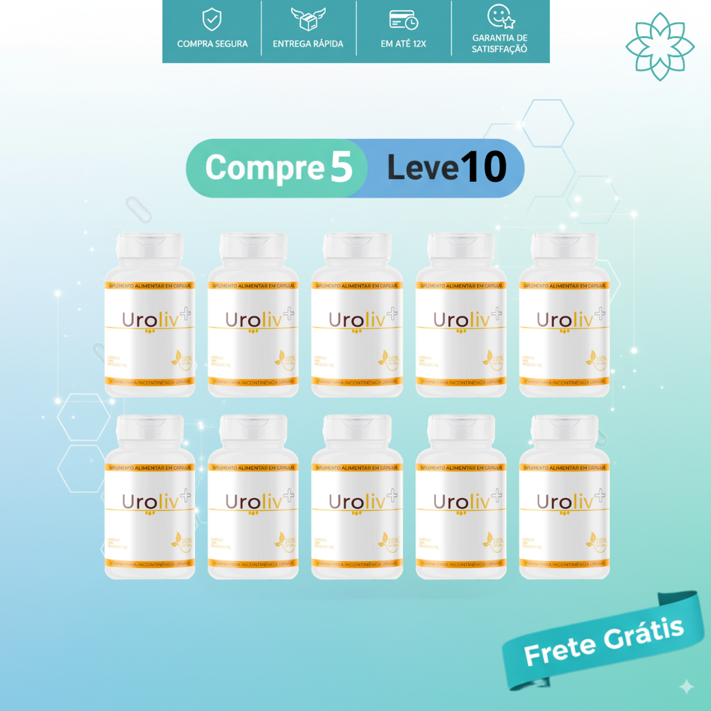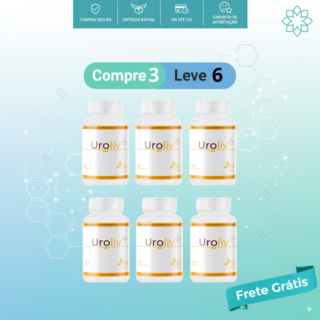 Uroliv é um suplemento em cápsulas formulado para oferecer suporte ao trato urinário e ao bem-estar íntimo feminino. Sua composição reúne nutrientes reconhecidos por contribuir para o equilíbrio, redução de desconfortos e mais segurança no dia a dia. Simples, natural e fácil de manter na rotina.